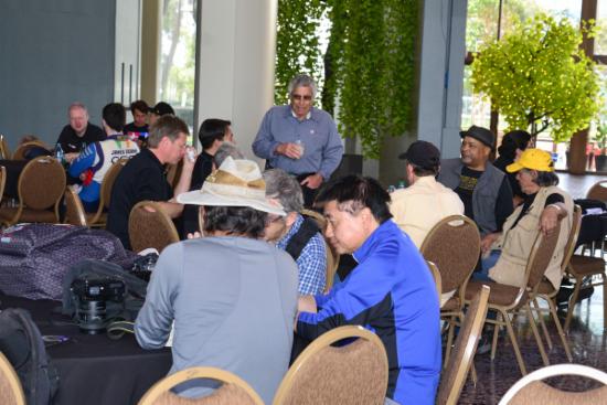 El diseãdor Peter Gregg y Ron Fellows contando interesantes historias a los fanaticos del motor