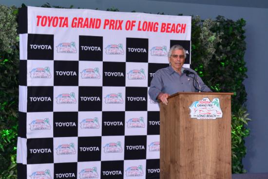 Jim Michaelian, Presidente de la Asociación del Gran Premio de Long Beach, platicando durante el dia de prensa del Gran Premio Acura de Long Beach 4 de Abril del 2023.