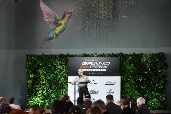Jim Michaelian, Presidente de la Asociación del Gran Premio de Long Beach, platicando durante el dia de prensa del Gran Premio Acura de Long Beach 4 de Abril del 2023.